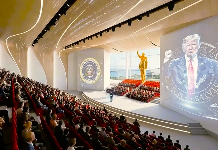 Trump's self-glorification has already reached heights approaching those of the North Korean Kim Jong regime, with its giant gold-covered statues, such as the one in the planned Donald J. Trump Presidential Library in Miami, which does not seem to be concerned with the preservation of books and documents, but bombastic tributes to the glorious era of Trump’s presidency and the man himself, for example in the form of a giant gold-plated sculpture.