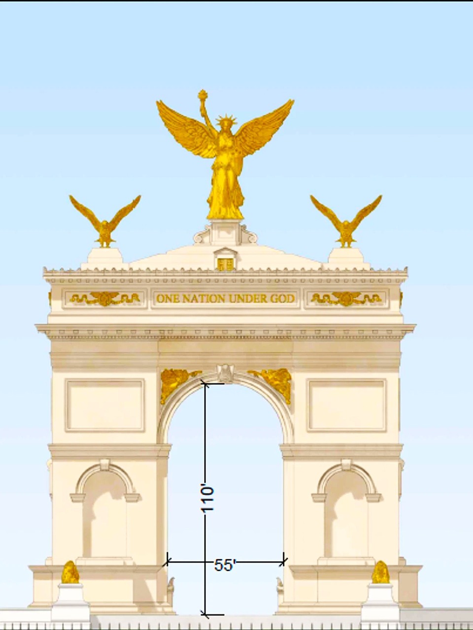 Well, the great megalomaniac claims that the giant triumphal arch will be erected to commemorate the 250 years of the United States as an independent nation. At 75 metres tall, it will be larger than its biggest predecessors – the Monument to the Mexican Revolution in Mexico City and the Arc de Triomphe in North Korea's Pyongyang. Pretty ugly creations, both of them.