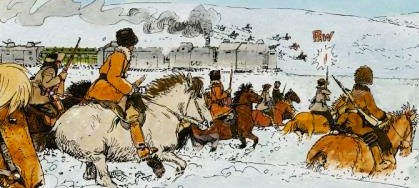 At first, the gods seemed to be on Ungern-Sternberg's side. His troops crossed the border with Russia and attacked the well-fortified monastery of Guzino Ozero. In spite of fierce resistance from "Red" machine-gun-armed forces, the monastery was taken and, in the usual manner, Ungern-Sternberg selected a hundred "Bolshevik commissars and Jews" and had them immediately executed. The rest of the captured garrison was forcibly recruited.