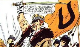 However, as I mentioned, this episode has nothing to do with the thrilling story that follows and which, as in all comic books by Hugo Pratt, also seems to be well entrenched in the time and environment it describes. Hugo Pratt was a world traveller and, like his hero, had a motley background. He was born in Rimini and spent his childhood in Venice. His grandfather was an English Catholic and his maternal grandfather a Jew, married to a Turkish woman. When Pratt was ten years old, his family moved to Ethiopia, where his father was an officer in the fascist militia. Five years later after his father had died in English captivity, Pratt returned with his mother to Venice. He began a career as a successful cartoonist and was in 1949 recruited to Argentina by the writer and cartoonist Héctor Oesterheld (assassinated in 1977 by the Argentine military junta). Pratt returned to Italy in 1962 and alternated his time between Italy and France. Throughout his career, Pratt travelled all over the world, often as part of the research he did in preparation for his comic books, of which the series about Corto Maltese in particular  highlighted exotic places and relatively unknown aspects of world history, not least Corte Sconta detta arcana about the battles in twentieth-century Mongolia and the grotesque Roman Nikolai Maximilian von Ungern-Sternberg.