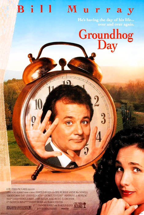 Samma år kom Groundhog Day, Måndag hela veckan, där en till en början livstrött och misantropisk väderman av okänd anledning tvingas att gång på gång återuppleva den andra februari i småstaden Punxsutawney. Något som gör att han med tiden lyckas tänka över sitt tidigare liv och ändra sitt beteende gentemot sina medmänniskor och skaffa sig nya och bättre prioriteringar.