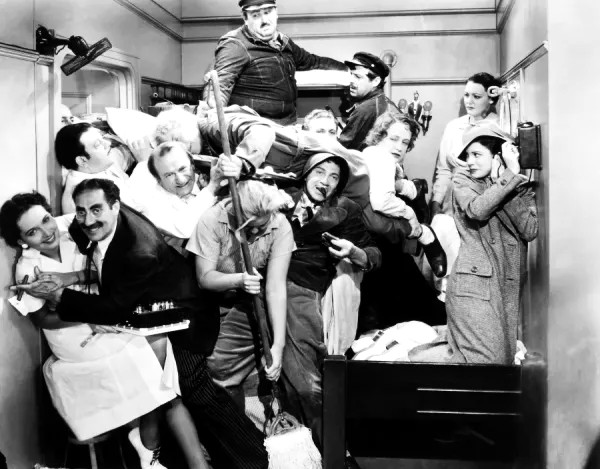 Alla dessa versioner av honom själv som fyller upp och trasslar till Bob Wilsons tillvaro får mig att tänka på en vansinnesscen i Bröderna Marxs En galakväll på Operan, då folk ständigt dyker upp i Grouchos fartygshytt.