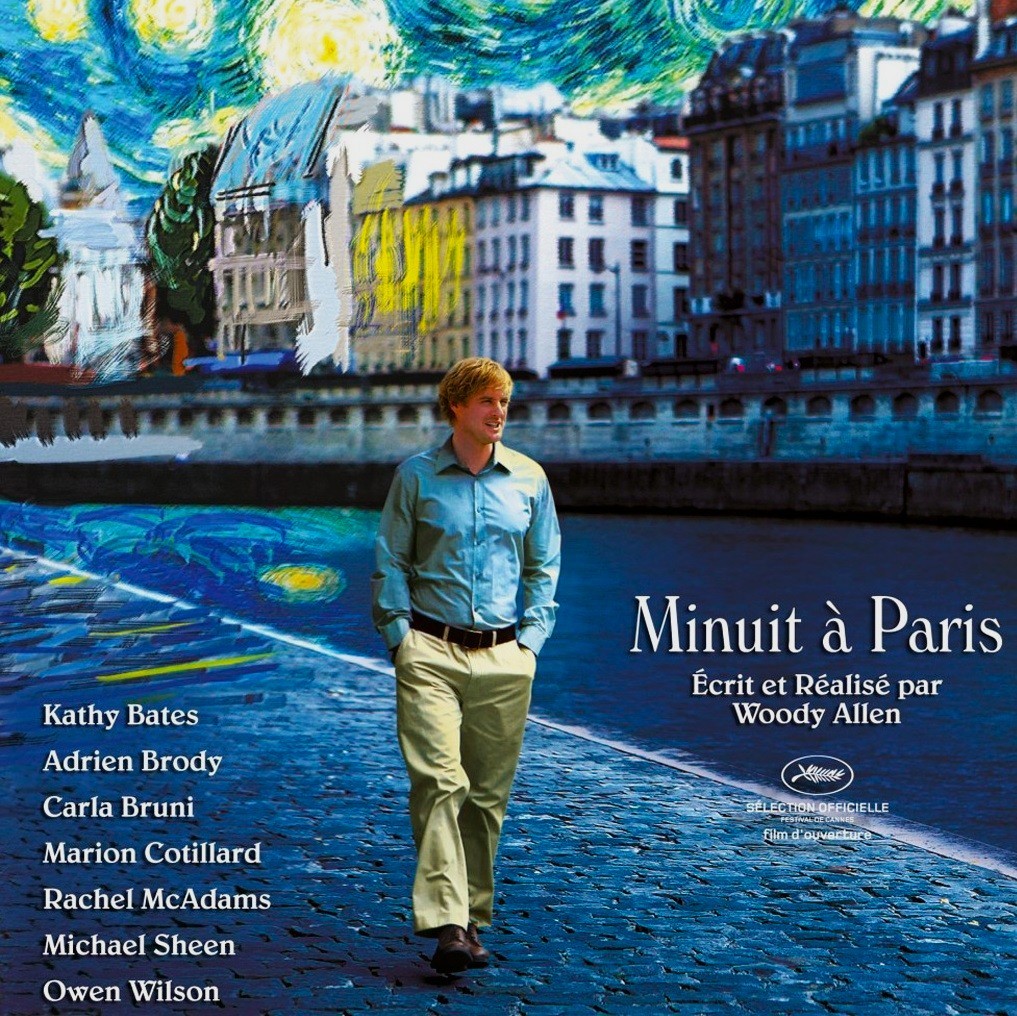 Jag såg filmen då jag bodde ensam i Paris och liksom huvudpersonen Gil Pender ägnade mycket av min tid åt att på kvällar och helger fascinerad flanera genom staden, Trappan där Gil inväntade bilen som i sällskap med Scott Fitzgerald, Hemingway eller T.S. Eliot förde honom till tjugotalet och möten med Cole Porter, Gertrud Stein, m. fl., låg något kvarter ifrån min bostad på Square Adanson.