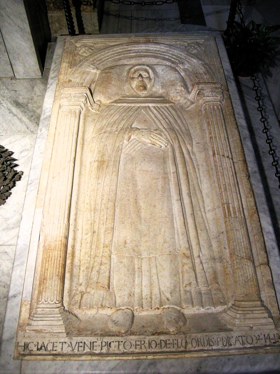 Fra Angelicos sarkofag finns i basilikan Santa Maria sopra Minerva i Rom. Vid fötterna av den gestalt som pryder den har hans elever ristat in orden:
