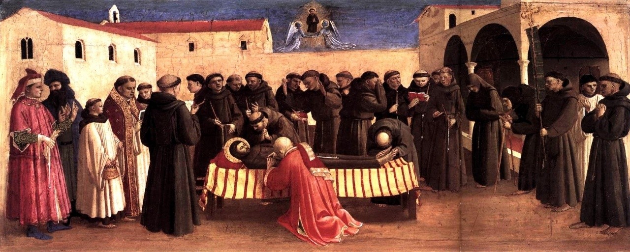Mitt bland predellans sex bilder har funnits den mer avlånga framställningen av Skt. Fransiskus begravning, som även den bevaras i Berlins Gemäldegalerie. Den sker på en klostergård i kretsen av sorgset behärskade brunklädda franciskaner, av vilka några gråter öppet.