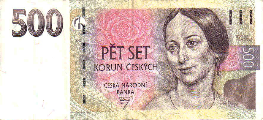 Kulháneks tjeckiska sedlar är utmärkta och även de konstverk i sin egen rätt. Bland annat framställde han 500 koronasedeln med en bild av Božena Němcová (1820–1862). Givetvis tog jag reda på vem denna för mig okända dam kunde vara.