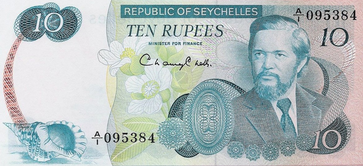 Seychellernas brittiska kolonialadministration lät dock sedlarna cirkulera i ytterligare åtta år, tills öarna 1976 blev en självständig republik, Sir James Mancham, som tidigare varit guvernör och nu blev president, kom att pryda republikens nya sedlar.