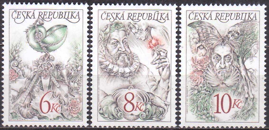 Kulhánek skapade även flera tjeckiska frimärken, som de nedan som hyllade den originelle tysk-romerske kejsaren Rudolf II som till sitt hov i Prag från hela Europa bjöd in konstnärer, musiker och inte minst alkemister som engelsmannen John Dee och astronomer som dansken Tyge (Tycho) Brahe och tysken Johannes Kepler.
