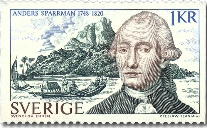 Jag har också kvar en serie med frimärken till minne av svenska forskningsresanden. Skickligt framställda med spännande bakgrunder, bland dem Linnélärjungar som Carl Peter Thunberg, som botaniserade i Japan, Indonesien och Sydafrika och Anders Sparrman, som seglade med James Cook