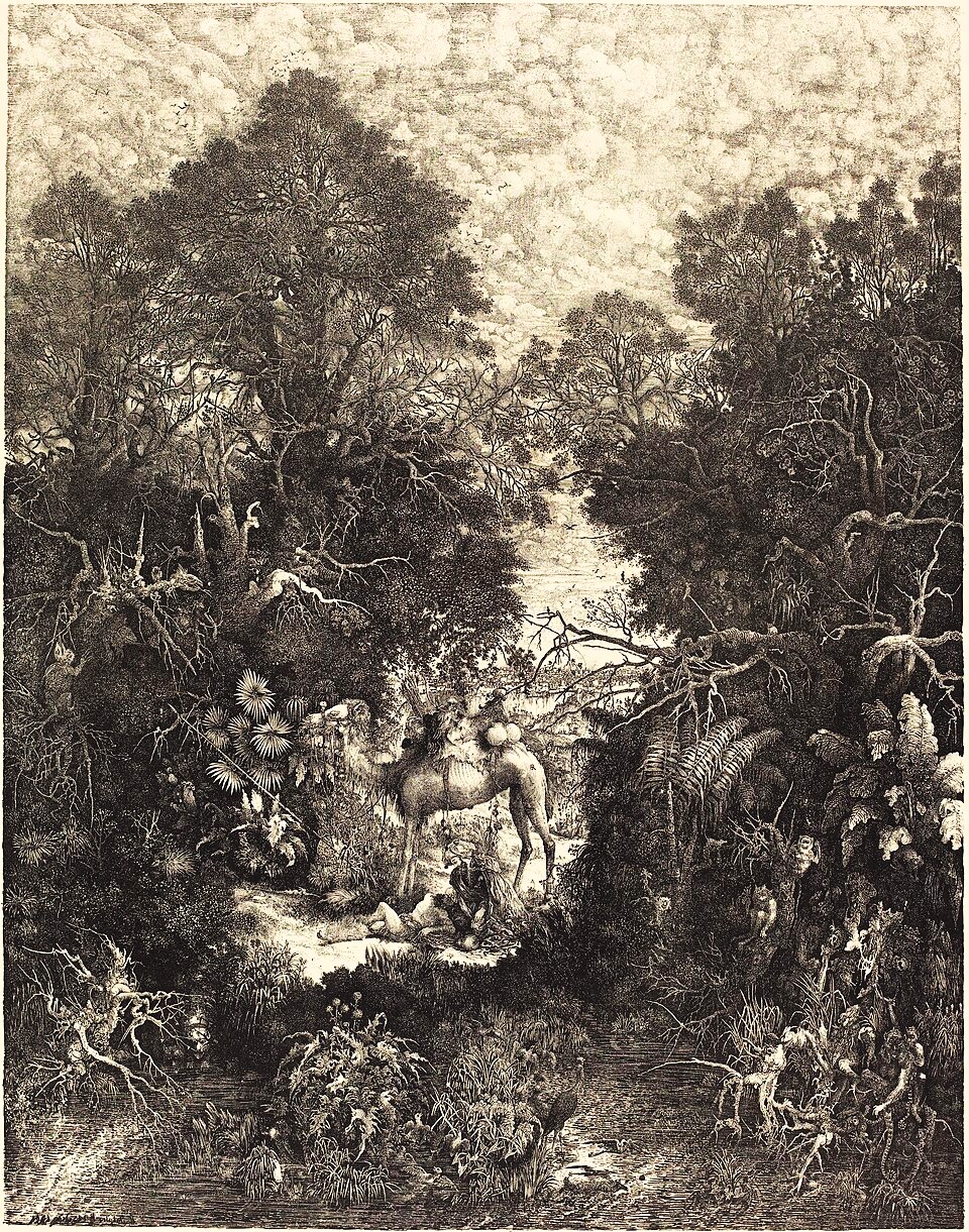 Även den i många avseenden oöverträffade och nästan obegripligt produktive Gustave Doré (1832 – 1883) som var samtida med Bresdin var även han en mästare i att visualisera parallella, mytiska världar. I allmänhet hämtade Doré  sin inspiration från litterära mästerverk som Bibeln, Den gudomliga komedin, Gargantua, Det förlorade paradiset, Den rasande Orlando, Don QuijoteSången om den gamle sjömannen och många, många fler.