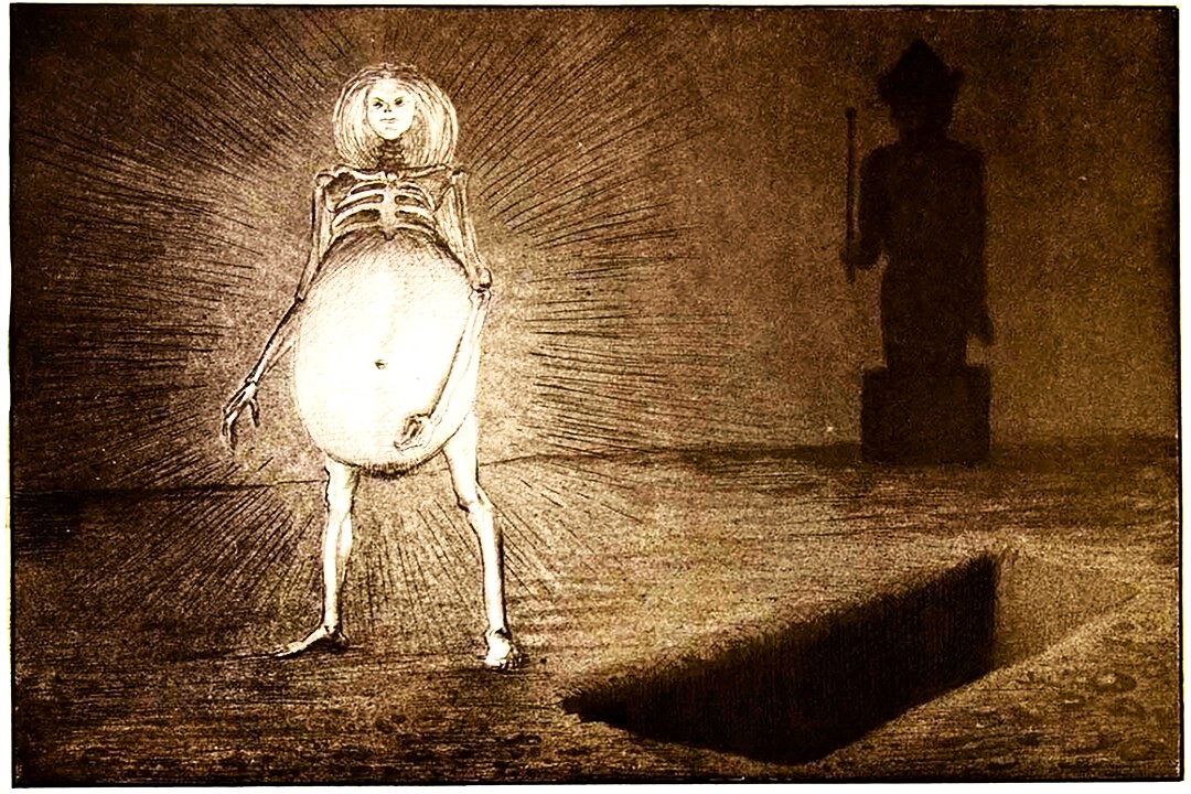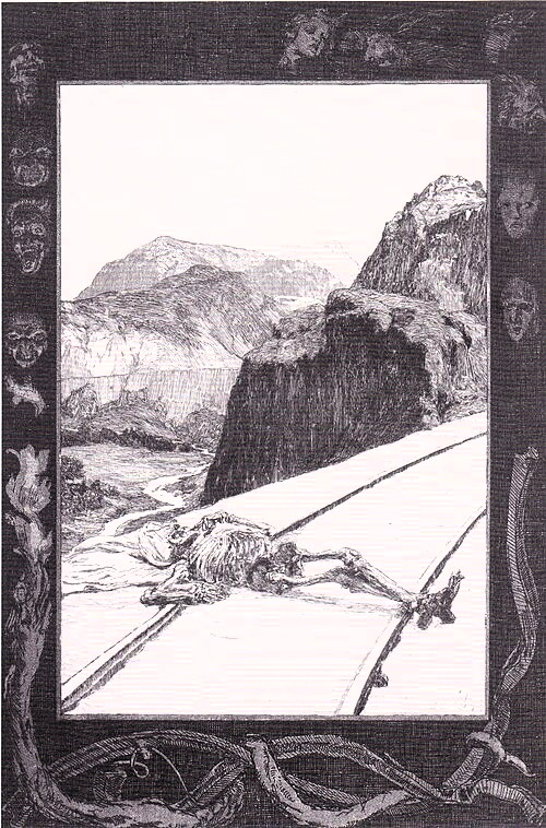 Norrmannen Theodor Kittelsen (1857 – 1914) som var väl förtrogen med norsk folktradition, inte minst de billiga tryck som fanns i allmogestugorna, återvände ofta till döden, troll och vålnader i sina gravyrer.