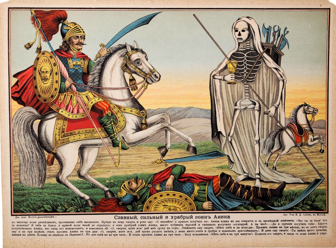 Kistebrevens ryska motsvarighet var lubki och även här finner vi en mängd dödsmotiv. Döden var ju förvisso en fruktad närvaro hos hela den fattiga europeiska allmogen.