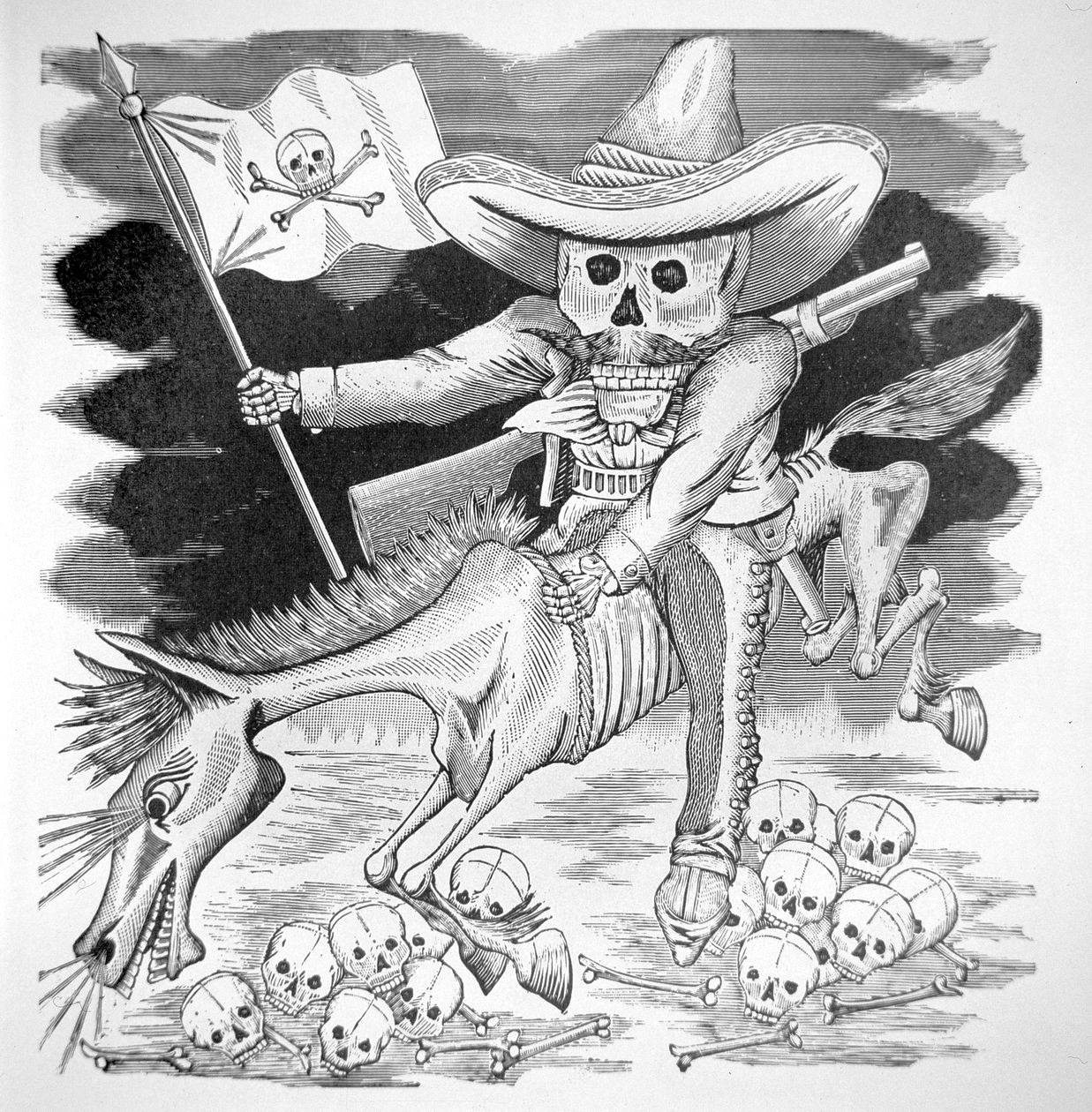 Ingenstans har dock den folkiga grafiken varit så dödsbesatt som i Mexiko. Dess store mästare och inspiratör till flera efterföljare, bland andra Diego Rivera och Frida Kahlo, var José Guadalope Posada (1852 – 1913) .