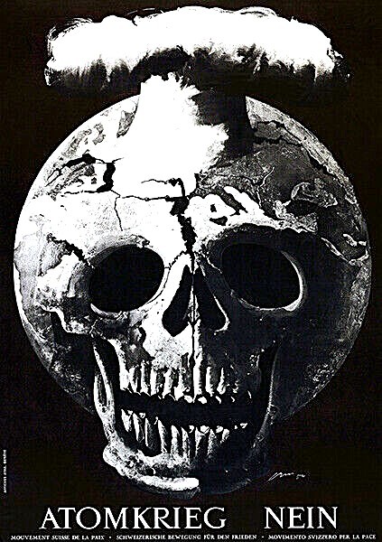 Den danske grafikern Palle Nielsen (1920 –2000) låter sina etsningar utspela sig i en dystopisk värld där folk jagas genom ofta öde stadslandskap.